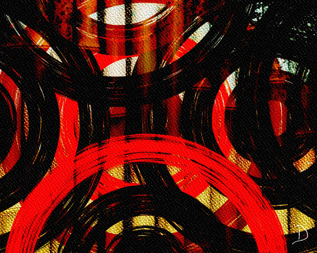 This piece, the feature image, started out as simple experimentation with concentric circles, but due to the colors I chose it ended up having an aboriginal feel to it almost right away. I experimented with different styles of canvas textures and I like how the one I chose added to the mix in an interesting way. It’s strange how a canvas texture can change the look of a painting whether digital or traditional painting. I considered overlaying a hand-drawn medicine wheel over this painting, but it only distracted from the abstract look that might already say something else to each viewer.