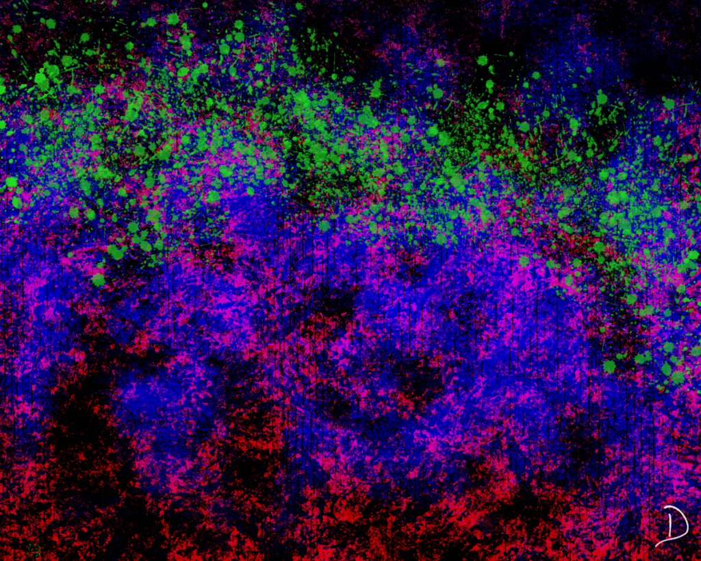 Most of my abstract art starts as experimentation with color, brush strokes, textures, and blend modes. In most cases the artwork takes on a life of its own and leads me wherever it will. By the time a piece is complete, I have an idea about what it is saying. Sometimes it is something very deep, while other times it is just a simple thought that comes to mind. I called this piece Abstract 080125 for the date I created it on, but I already had other titles in mind. Before I added the green splatter, I had a deep sense of something nebulous, hauntingly so — something one might see through the Hubble telescope. I also saw within the piece a deep-sea adventure. I could envision the Nautilus, from Jules Verne’s book 10,000 Leagues Under the Sea. Note that the Nautilus played a role in a book I was reading at the time, so it was obviously somewhere in the recesses of my mind. I added the green splatter to hint at algae, or some other sea-based organism. All that said, I could have titled the piece Nebula, or 10,000 Leagues to hint at my artistic perceptions.