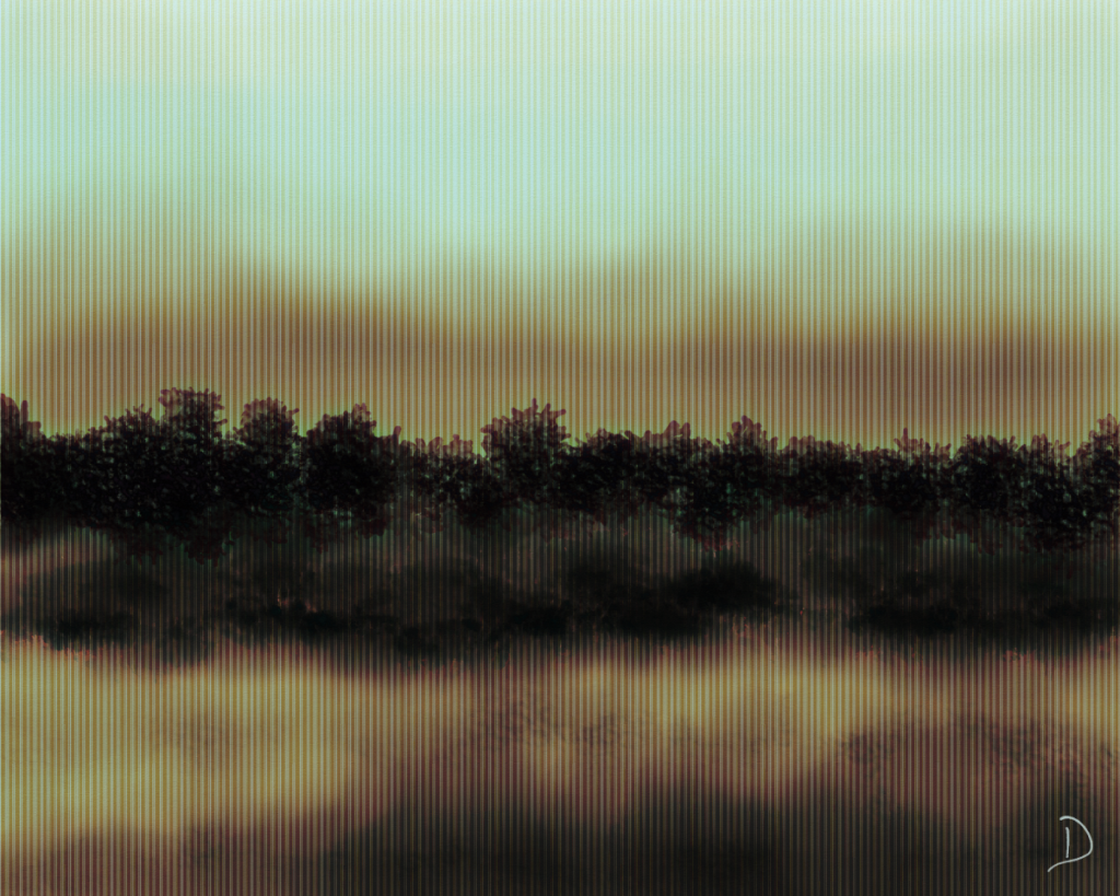 This piece, as usual, started with brush stroke experimentation. As I worked on the piece, I saw a treed horizon and a gloomy sky come to life, all reflected in waters below. I added vertical strokes to add some mystery, which I feel worked well. Once complete, I was left with a feeling of a war-torn Vietnam of the past. Although I was too young to remember this war, I do recall many of the feelings it stirred up in people, which I read about in books and experienced in movies. Sad though it may be, I really like how this piece turned out.