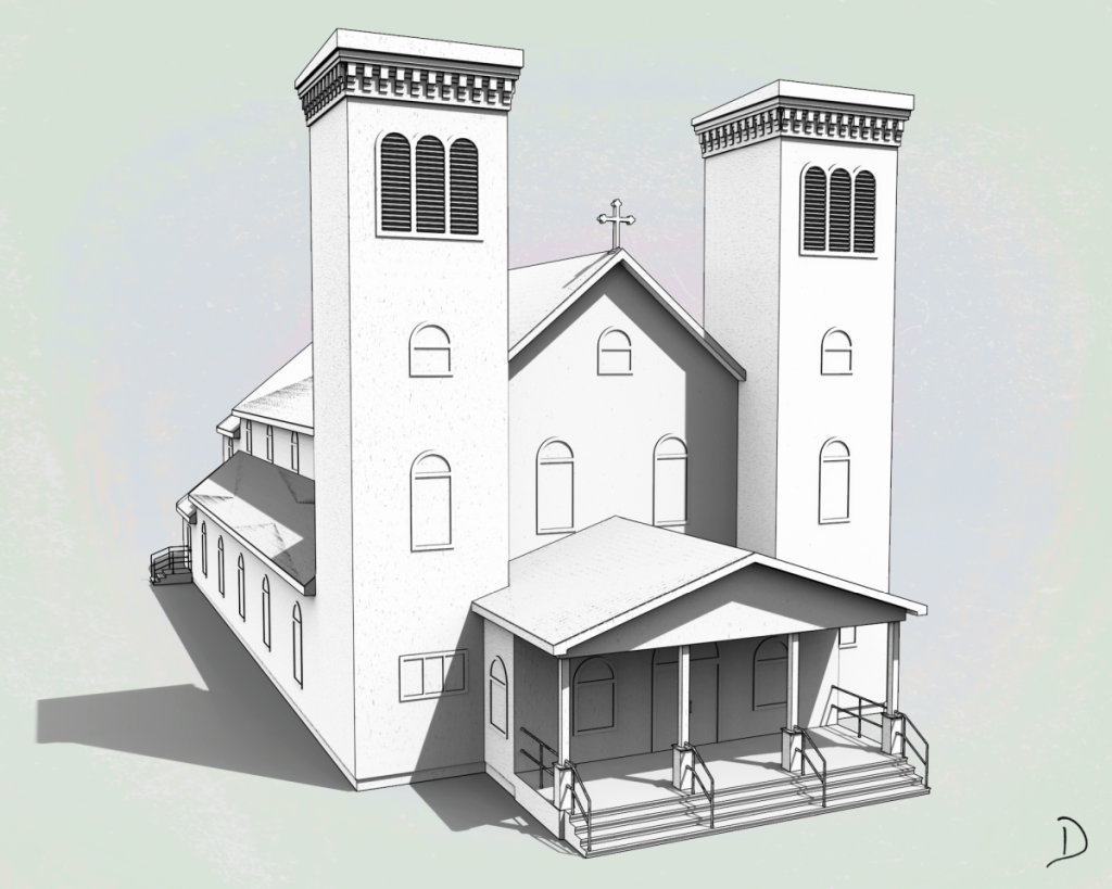 St. Peter’s Cathedral – Cartoon Render with Sketch Filter – Modeled, Rendered & Edited by Don Cheke