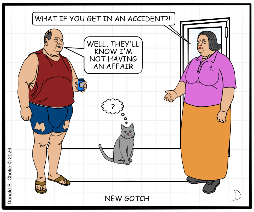 In response, and not having to give it much thought, I said, “well, they’d probably think that this guy’s certainly not cheating on his wife.” Why, you ask!? Because there is an old tale that states that you can always tell when a man is having an affair, if all of a sudden, he’s got all new underwear, or gotch, as we call it here in the Canadian prairies.